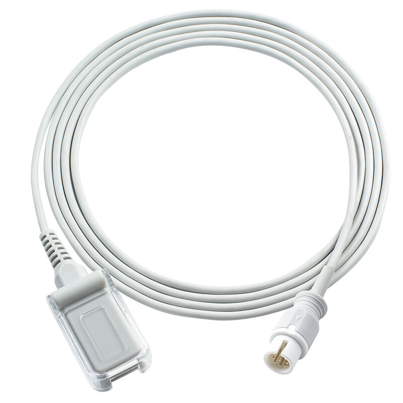 SpO2-Verlängerungskabel haben typischerweise an einem Ende einen Sensoranschluss, der an den Pulsoxymeteranschluss angebracht ist, und an dem anderen Ende einen Hauptanschluss, der an die Hauptpulsoxymeteranlage angebracht ist.